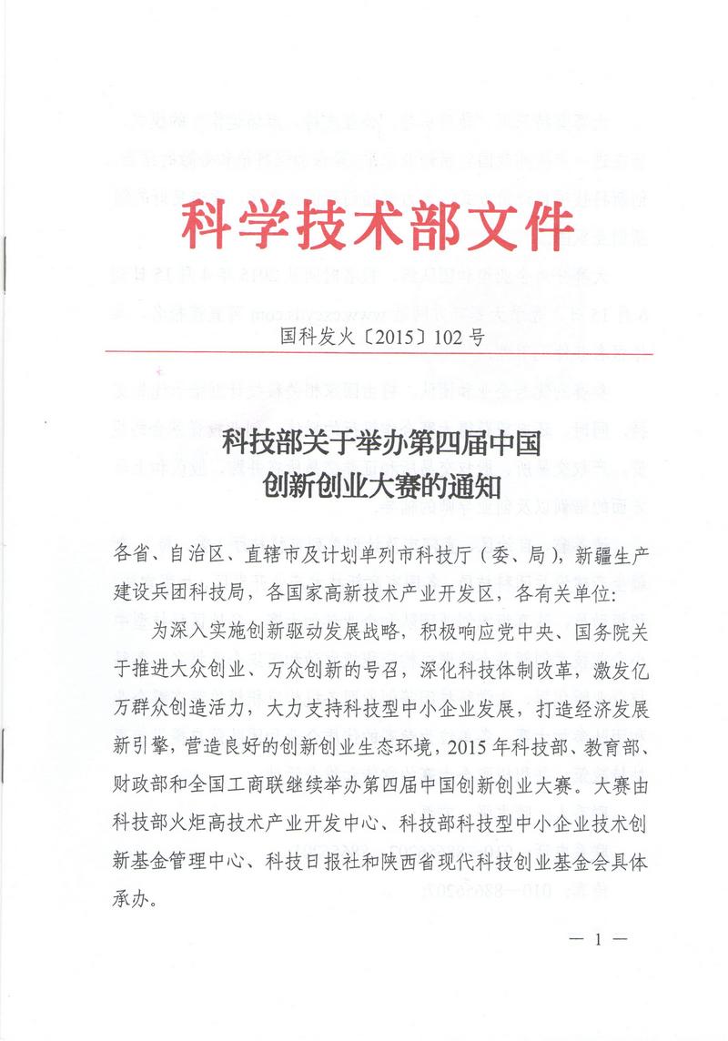 科技部關于舉辦第四屆中國創新創業大賽的通知